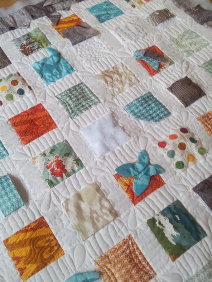 Regarding that I haven’t sewn for eight months after her birth and the fact that this quilt is in use day and night that really was a piece of luck!