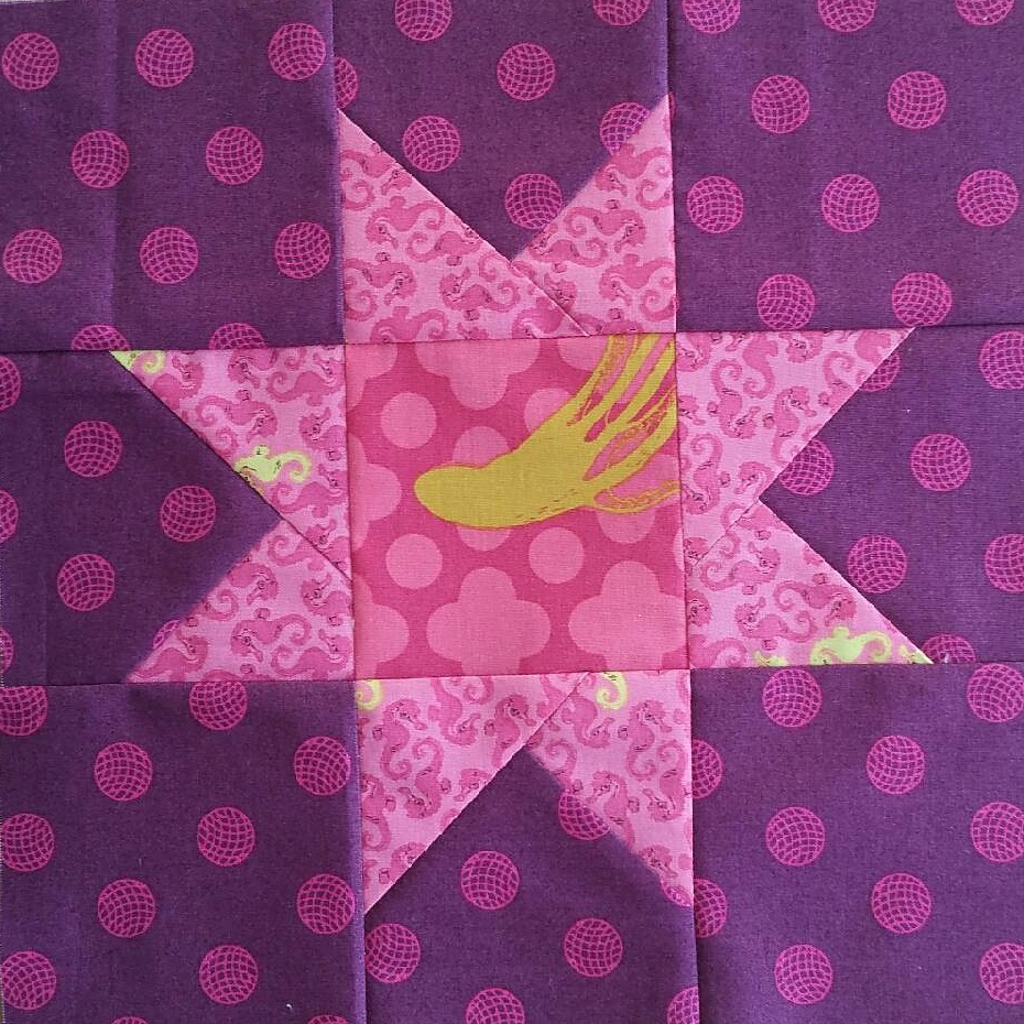 So, Stash Bee. First task: pink and purple star or purple and pink star. Here you can read about Alannas (@blanketfort.quilts) design process.